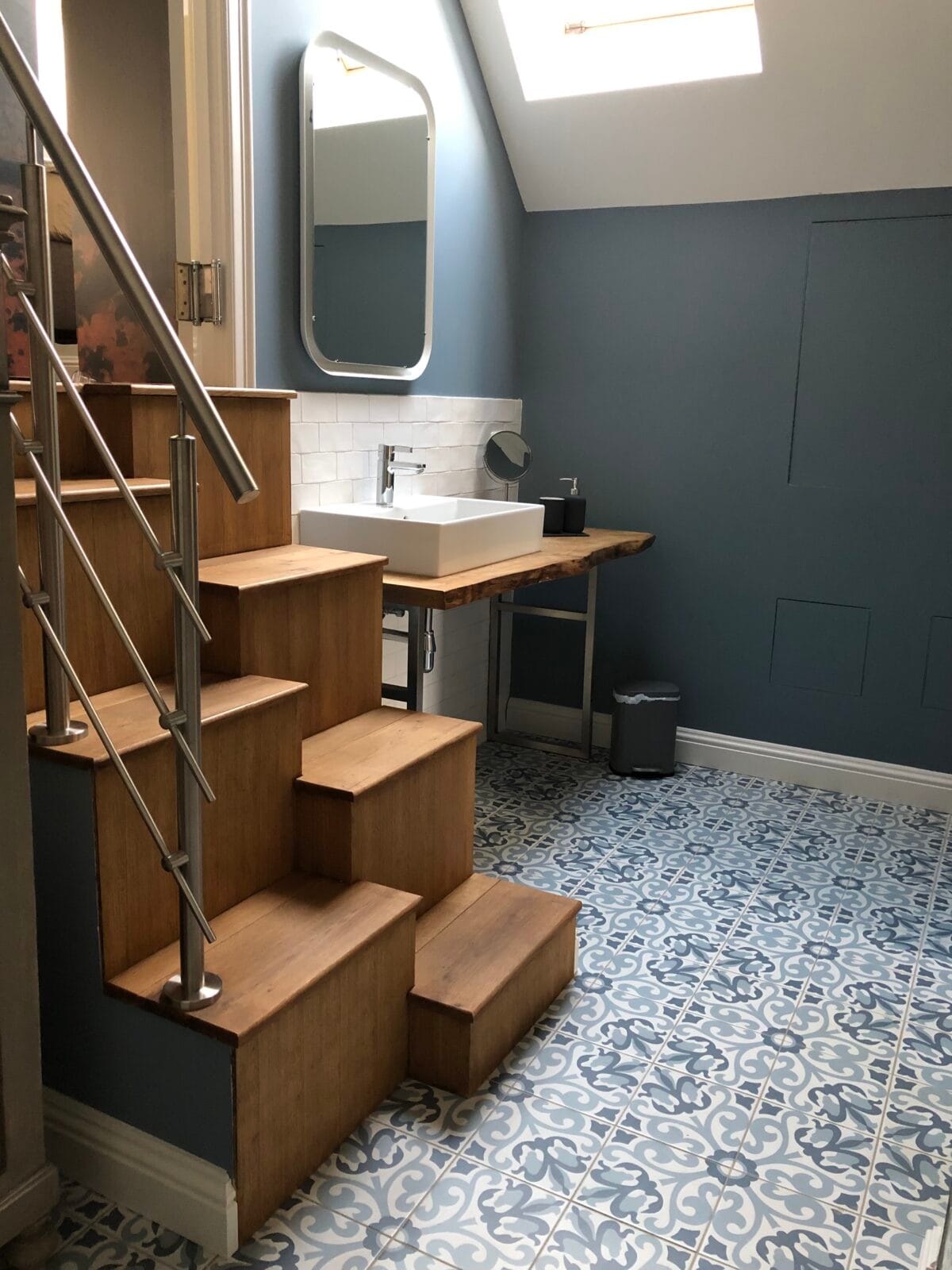 Ik had de keuze uit maar liefst vier slaapkamers en drie badkamers; stuk voor stuk pareltjes. Opmerkelijk was de slaapruimte in de nok van het huis vanwege de trap die ernaartoe leidde: een ganzentrap. Een trede links en een trede rechts om ruimte te besparen. Het leek me ideaal voor een modern tiny house.